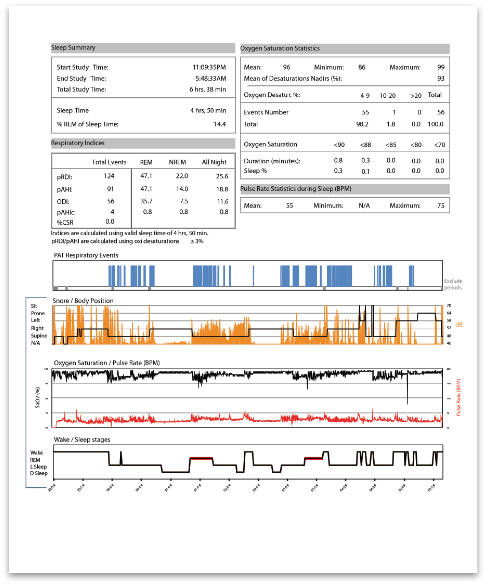 In the morning the data is downloaded online and an independent qualified sleep technician reports the results and the raw data to you. The information you will obtain will be your AHI & RDI which are useful in diagnosing obstructive sleep apnoea and upper airway resistance syndrome. It will also tell the time and frequency of waking up at night, REM sleep and sleeping position. Having all of this information it is vital to make a diagnosis of obstructive sleep apnoea and other issues that could be going on. The WatchPat device also gives an indication of whether or not you may have upper airway resistance syndrome or other sleep disorders such as insomnia, REM associated apnoea, central apnoeas etc.